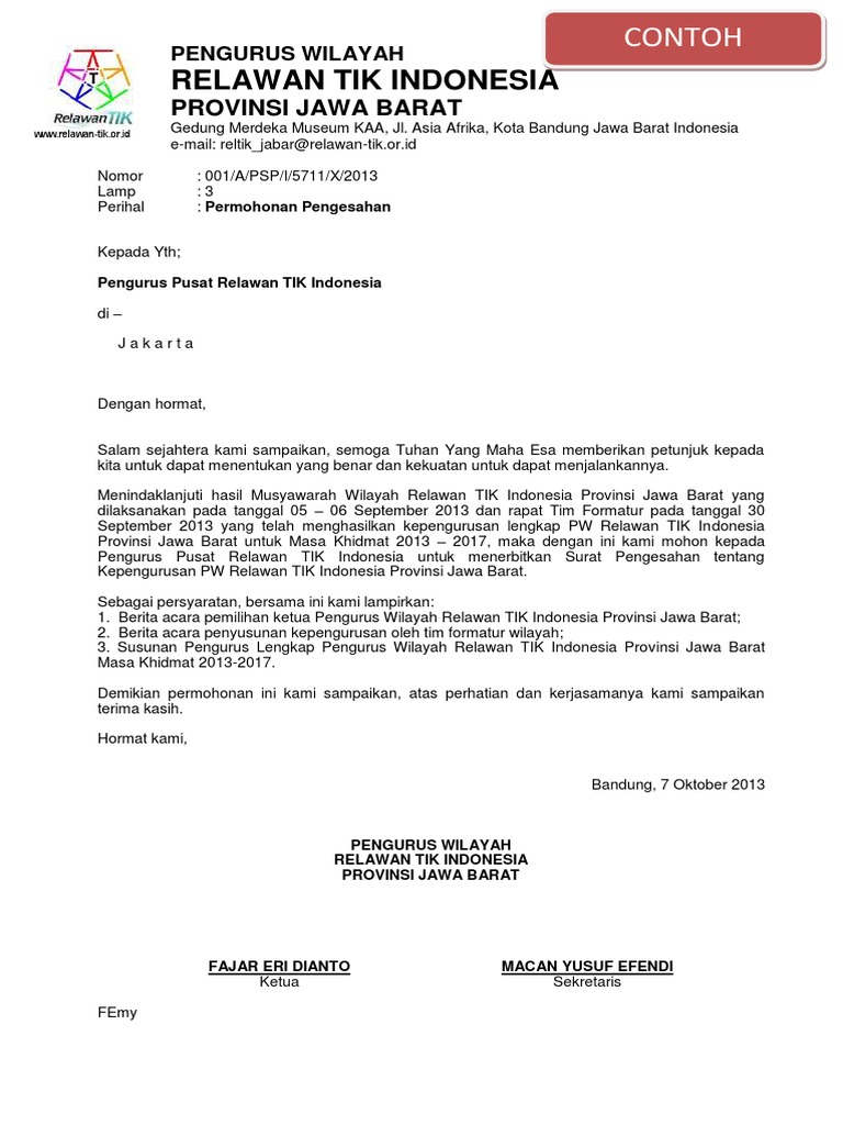 Contoh Surat Permohonan Pengesahan Dan Berita Acara Relawan Tik Pdf